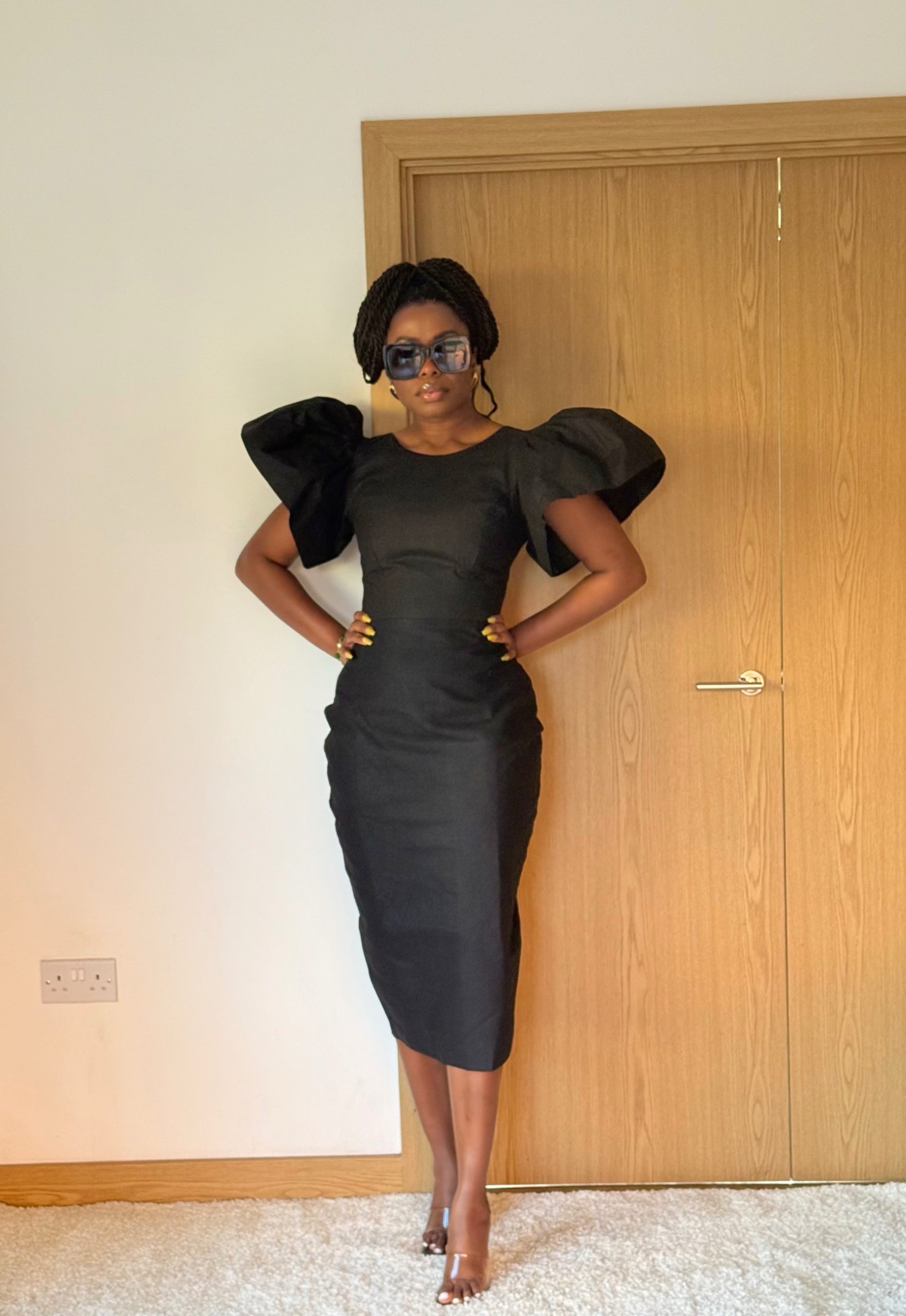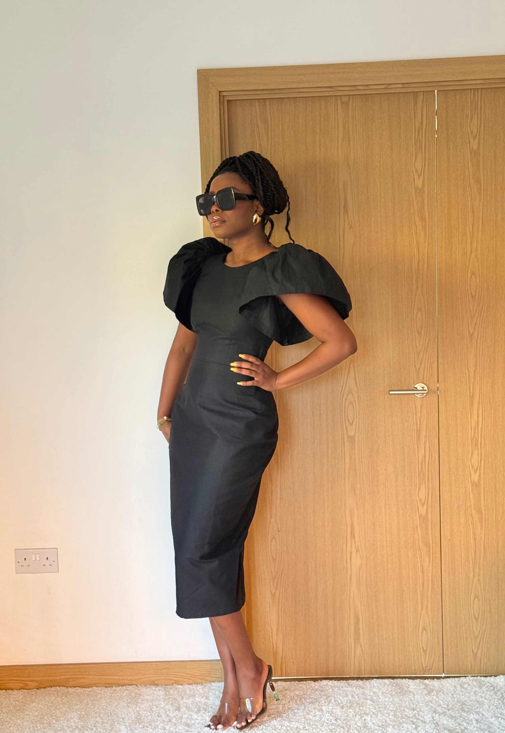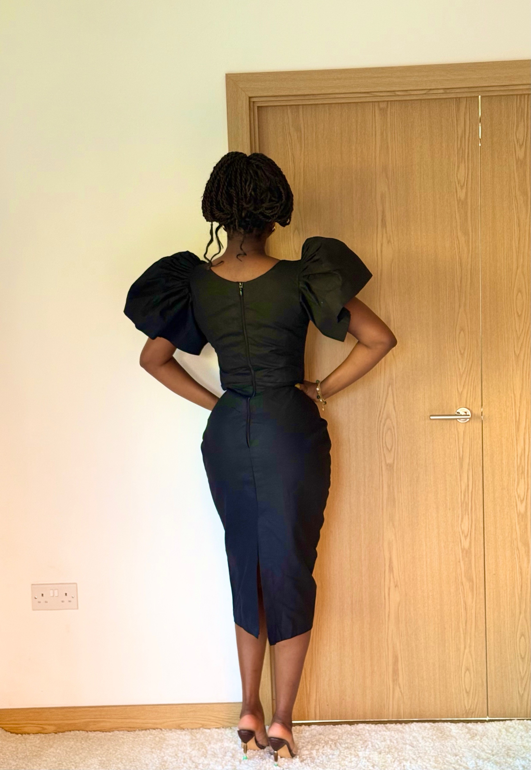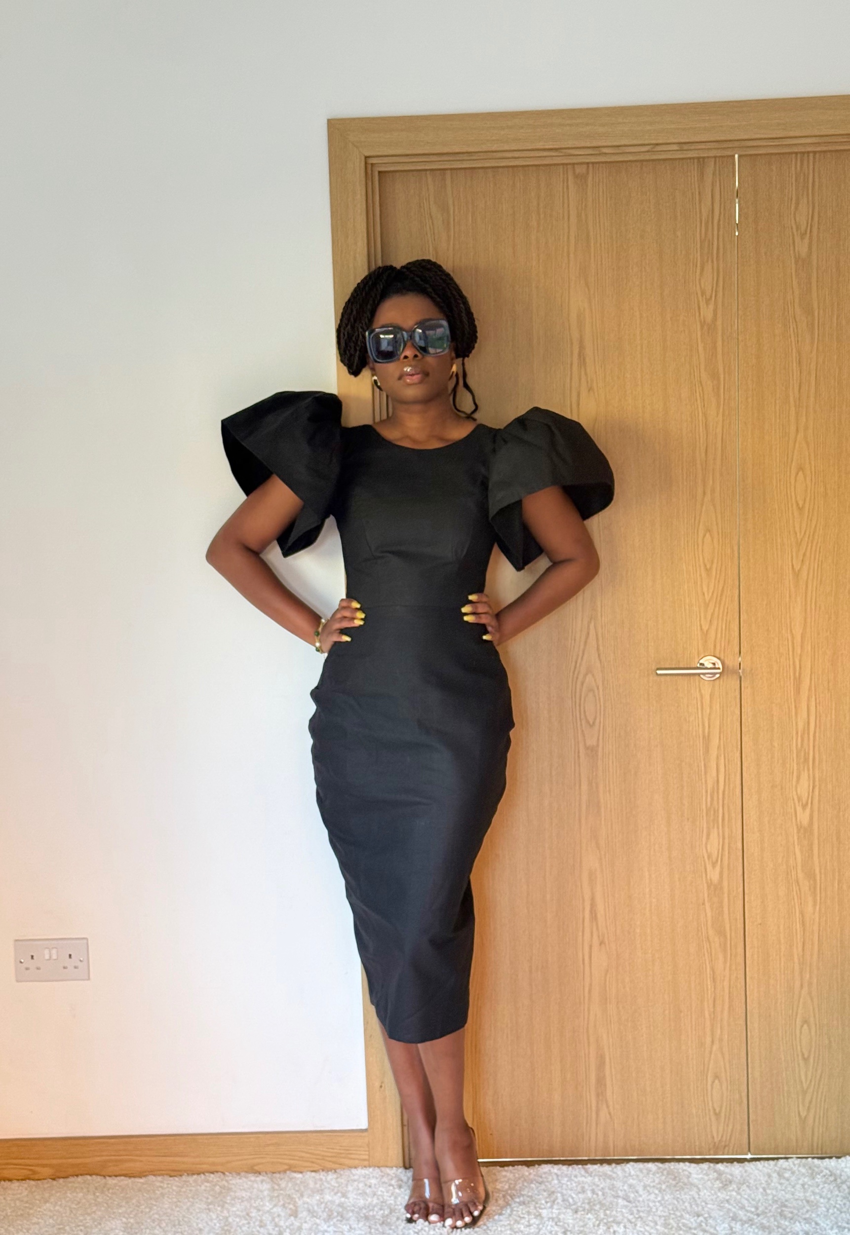 Ankara cotton midi dress with bold sleeves